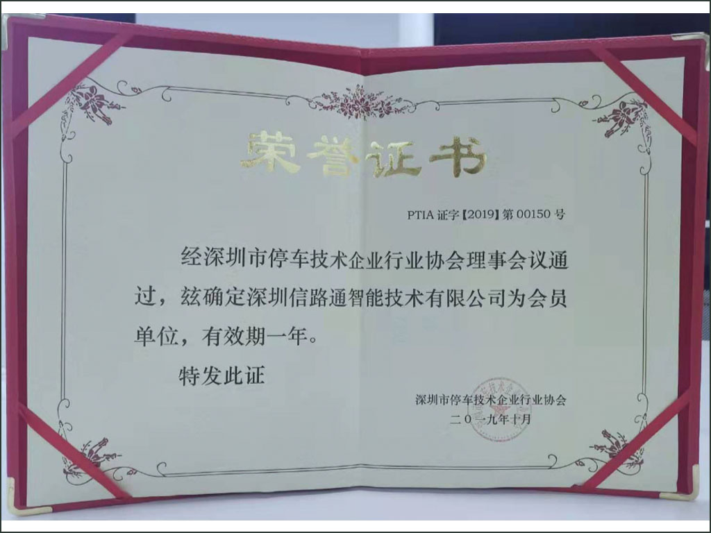 祝賀信路通加入深圳市停車行業(yè)協(xié)會