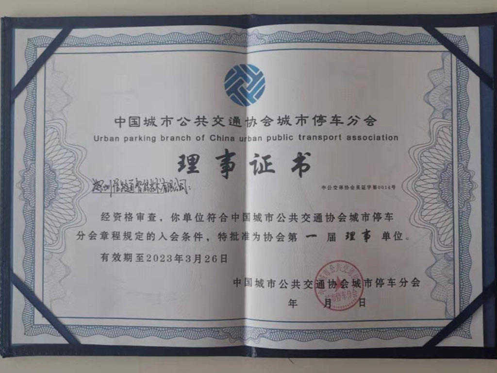 信路通當(dāng)選“中國城市公共交通協(xié)會(huì)城市停車分會(huì)”理事單位?